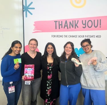 Your chapter will partner with local shelters, schools, clinics, and community organizations to deliver health education and resources. We support chapters in identifying community partners and developing sustainable outreach programs. Chapters may lead workshops on reproductive health, puberty and menstruation, wellness, and preventive care, while also helping distribute menstrual products, safer sex kits, and referrals to medical services.